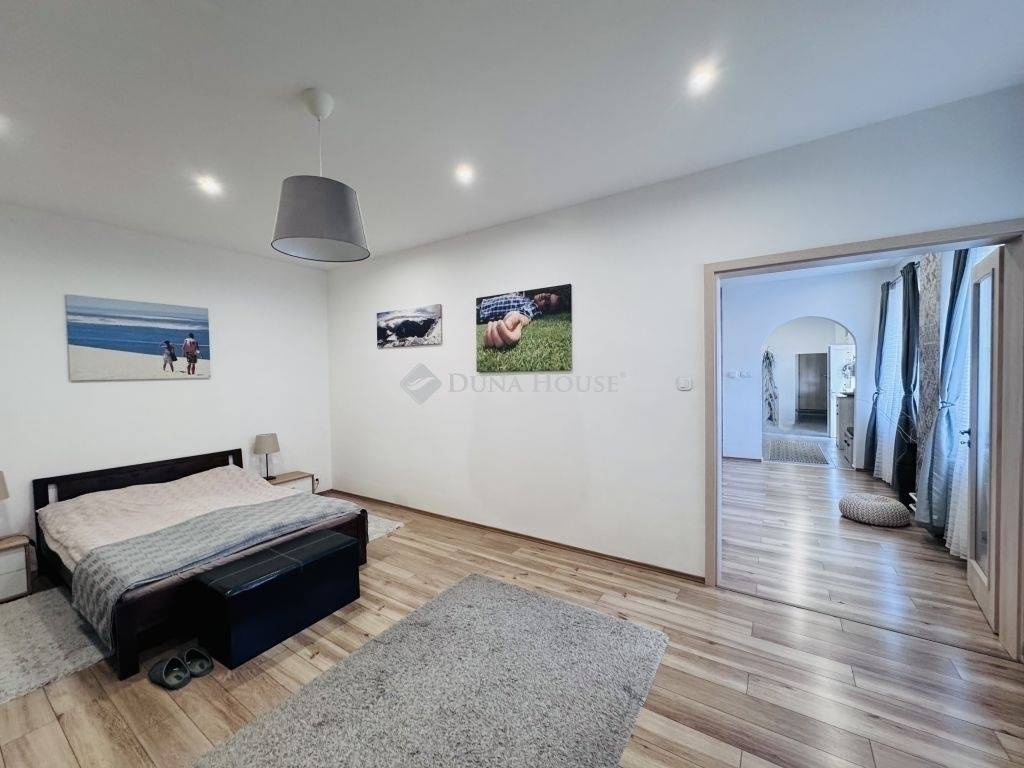 Pécs közkedvelt Patacsi városrészén eladóvá vált egy közel 100 m²-es, teljeskörűen felújított lakás amelyhez saját, kb. 350 m²-es kert tartozik.Az ingatlan praktikus elrendezésű: két külön nyíló hálószobával, valamint egy tágas, világos nappalikonyhaétkező egybenyitott élettérrel rendelkezik, amely ideális családi együttlétekhez és vendégfogadáshoz is.A lakás teljes körű felújításon esett át, mely során:a villanyvezetékek cseréje megtörtént,a mennyezet szigetelést kapott,új burkolatok kerültek beépítésre,valamint modern, műanyag nyílászárók lettek beépítve.A ház előtt egy autó számára kényelmes parkolási lehetőség biztosított.A csendes, családi házas környezet és a saját kert kiváló lehetőséget kínál pihenésre, kertészkedésre vagy akár családi programokhoz.