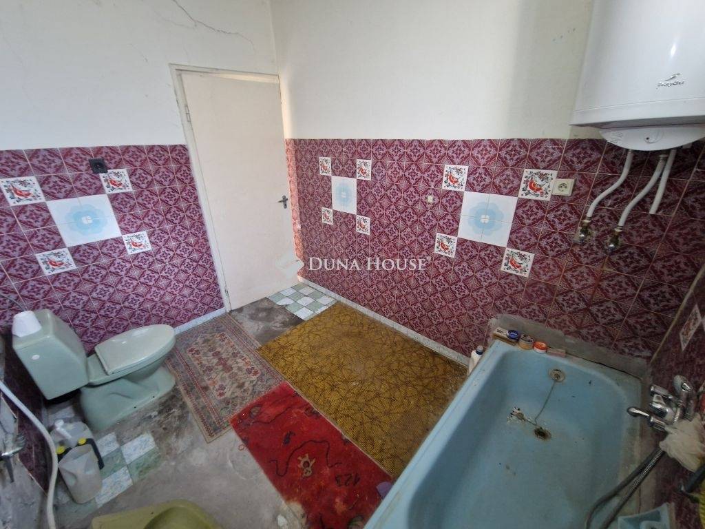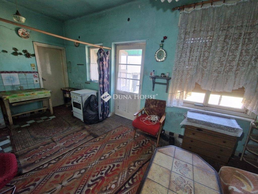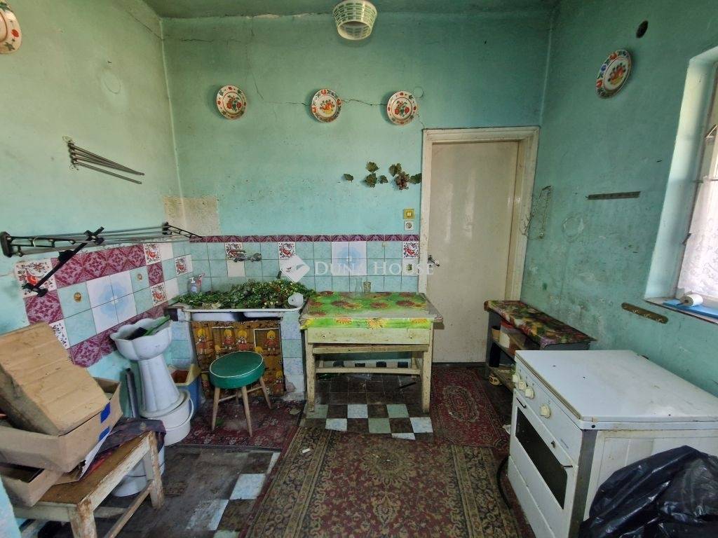 Bátaszéken eladó 71 m2-es családi ház 1079 m2 telekkel, melléképülettel, ólakkal.Az 1970-es években épült téglából, beton födémmel, szigetelt beton alapra. Kádár-kocka típusú ingatlan, mely csendes, átmenő forgalomtól mentes zsákutcában található.Felújítandó állapotú, de stabil szerkezetű, kiváló alap felújításra, korszerű otthon kialakítására. A tető is masszív, egyenes, kerámia szalagcseréppel fedett. Található benne 2 szoba, előszoba, konyha-étkező, fürdő-wc, kamra/padlás feljáró, illetve az előszobánál kis terasz is készült. A konyha résznél is található bejárat.A belső kialakítás könnyen átalakítható modern otthon számára: Mindössze egy fal kibontásával egy tágas amerikai konyhás nappali, 2 tágas szoba, illetve fürdő-wc, terasz elrendezést kapunk. (kép az alaprajzon).A szobák betonozottak, melyekben linóleum és szőnyeg a borítás, a konyha rész cementlapos, az előszoba és fürdő hidegburkolattal ellátott. A ház külső és belső nyílászárói fából készültek, ablakait redőny védi.A kiépített villamos hálózat 1x10A nappali, 1x10A éjszakai áram.A fűtés egyedi, kályhás, a meleg vizet villanybojler állítja elő.A ház hátsó részénél található több, szintén téglából készült, felújítandó épület (16 m2-es melléképület, ólak, tárolók), illetve az udvar részen 1-2 korábbi épület visszabontva. A telek sík, a kert pedig megfelelő méretű a család számára elegendő növények megtermeléséhez, állattartáshoz. A közelben található több bolt, helyi buszmegálló, vasútállomás, mentőállomás, stb., illetve alig 3-4 percre az M6-os autópálya fel, -lehajtó.A ház kifizetés után rövid időn belül kipakolva birtokba vehető! Víz, szennyvíz és villany adott, gáz az utcában elérhető. Ez az ingatlan kiváló választás mindazok számára, akik békés, családbarát környezetben szeretnék megteremteni jövőjüket, és egyben hosszú távon is értékálló befektetést keresnek.Érdeklődés esetén keressen bizalommal, nézzük meg együtt!