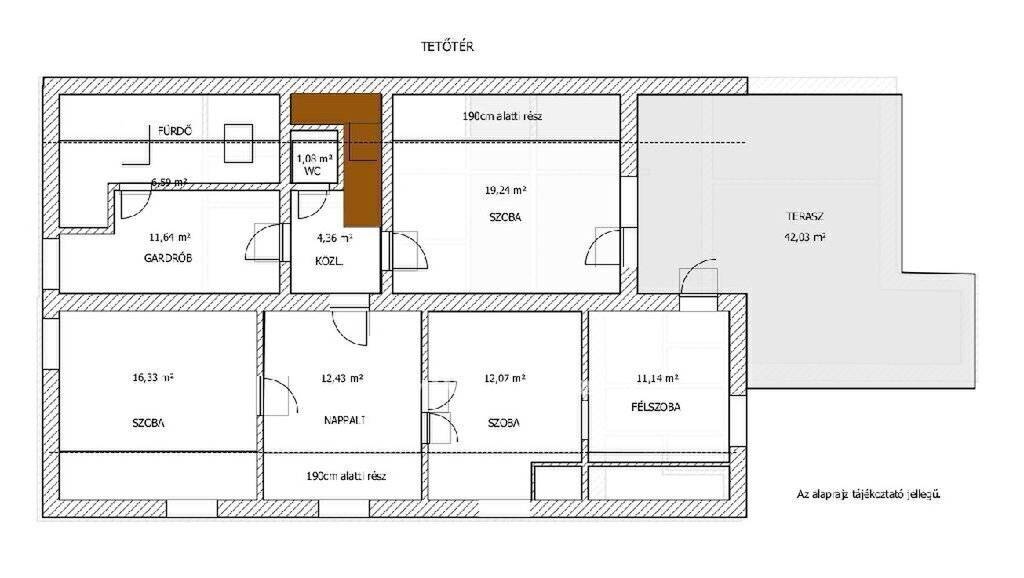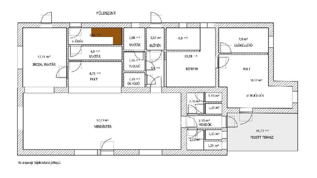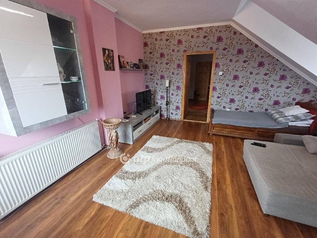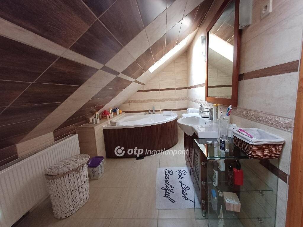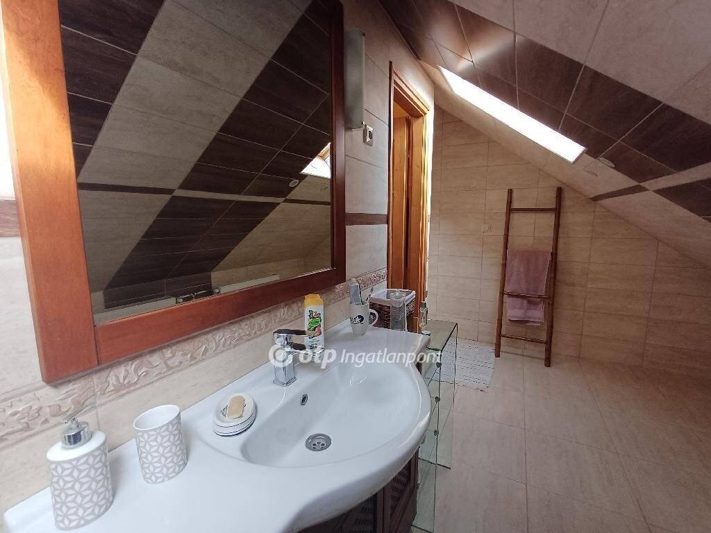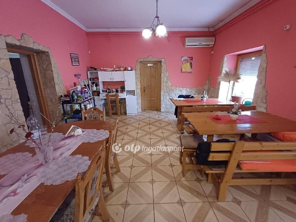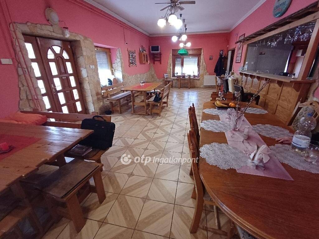 A 258m2 hasznos alapterületű teljeskörűen felújított és korszerűsített ingatlan földszinti része nettó 163m2 alapterületű, eredetileg vendéglátó funkcióra lett kialakítva, de akár üzletnek, irodának is kiválóan alkalmas lehet. A tetőtérben kialakított külön bejáratú lakás hasznos (190cm belmagasságot elérő) alapterülete 95m2, amely 5 lakószobát, gardrób szobát, fürdőszobát, WC-t foglal magában, valamint egy hangulatos, tágas (40m2-es), részben fedett terasz növeli az életteret, ahová 2 szobából is kijuthatunk.