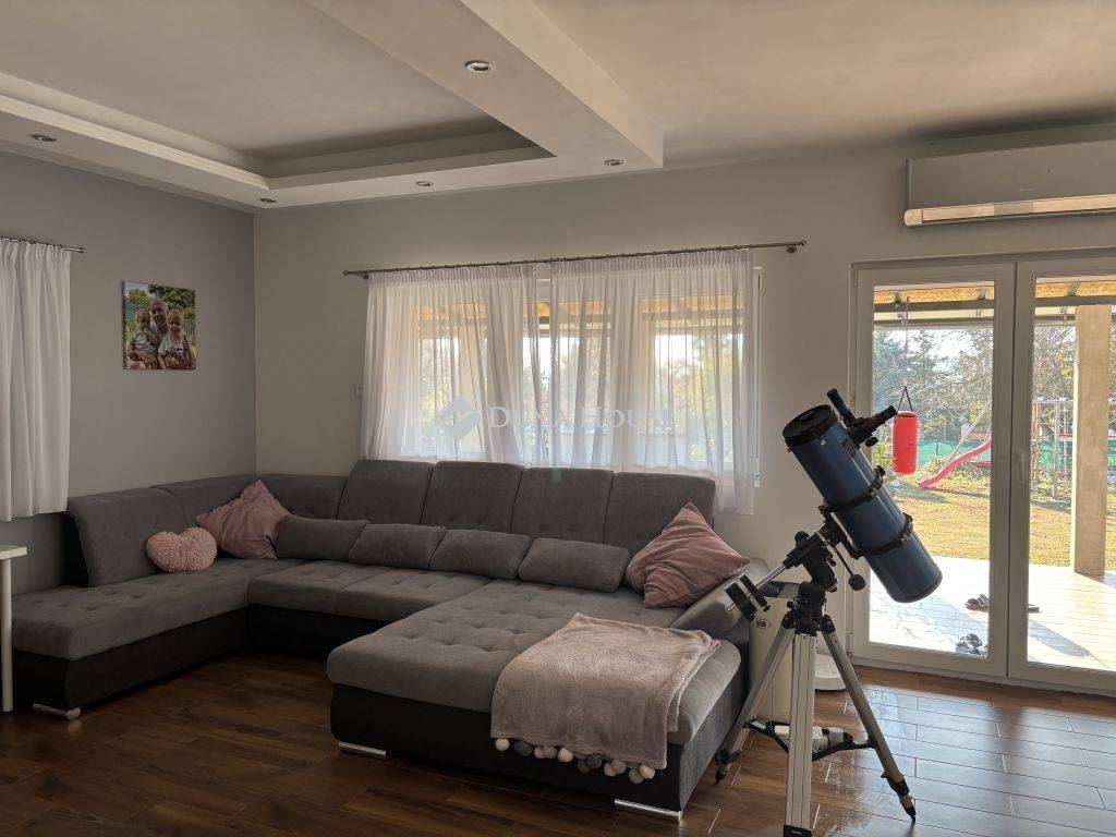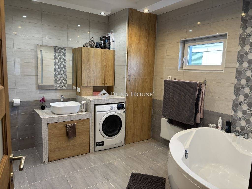 Eladásra kínálunk egy modern, energiatakarékos, 2022-ben épült családi házat Balatonkenesén, amely kiváló választás mind állandó lakhatásra, mind nyaralónak. Az ingatlan csendes, zsákutcában helyezkedik el, mindössze 1,5 km-re a Balatonparttól, ahol szabadstrand is van.A ház 118 m² alapterületű, és egy 900 m²-es telken helyezkedik el.Jól átgondolt elosztásának köszönhetően 3 külön nyíló szobát, egy tágas, világos nappalit, valamint 2 fürdőszobát foglal magában.Egy nagyobb kádas és egy kissebb ,tusolóval ellátottat. A nappaliból egy hatalmas, fedett terasz nyílik, amely ideális helyszín étkezésre, pihenésre és kikapcsolódásra.Az ingatlan délnyugati fekvésű, így egész nap világos, napfényes élettereket biztosít. A tetőtérben padlás került kialakításra, amely az előtérből nyílik, így praktikus tárolási lehetőséget kínál.Az épület korszerű Wolfhouse rendszerű készház technológiával készült, amely a gyors kivitelezés mellett magas minőséget és kiváló energiahatékonyságot garantál. A hőszigetelés kiemelkedő: a falakon 10 cm, a padlóban 16 cm, míg a födémen 28 cm vastag szigetelés található.A fűtést korszerű, költséghatékony megoldások biztosítják: 8 kW-os napelemes rendszer (10 kW inverterrel), elektromos fűtőpanelek és padlófűtés gondoskodnak az alacsony fenntartási költségekről. Az ingatlan háromfázisú elektromos áramellátással rendelkezik, amely ideális nagyobb energiaigényű berendezések használatához is.A kert kiválóan alkalmas családi életre: fúrt kút, játszótér és homokozó is kialakításra került. A telken egy kb. 20 m²-es, sávalapra épített kerti ház található, amely további tárolási vagy egyéb funkciókra is alkalmas. Az udvarban akár 4 autó számára biztosított a parkolás.A kert végleges kialakítása és a kerítés design-ja az új tulajdonos ízlésére van bízva, így lehetőség nyílik az egyedi elképzelések megvalósítására.Ez a modern, energiatakarékos otthon kiváló lehetőség mindazok számára, akik nyugodt környezetben, mégis kiváló elhelyezkedéssel rendelkező ingatlant keresnek a Balaton közelében.Ha felkeltette érdeklődését ez a modern ,újszerű ingatlan keressen és nézzük meg együtt!