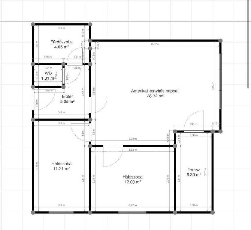 - amerikai konyhás nappali + 2 külön nyíló szoba