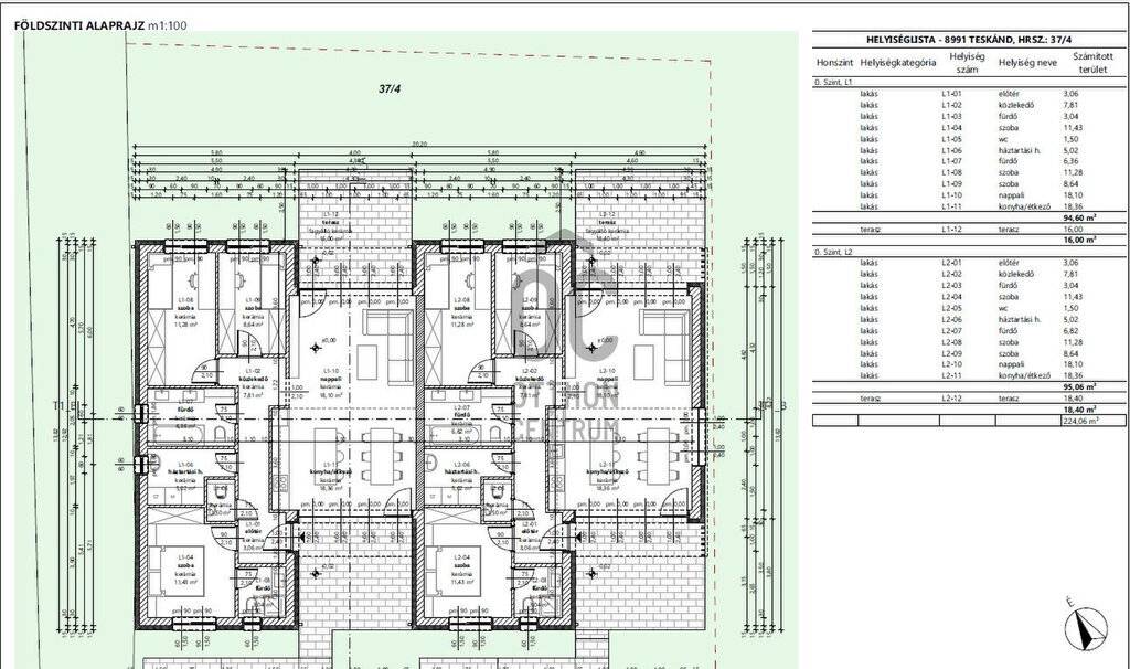 - Földszintes 94 nm-es, 4 szobás ikerház
