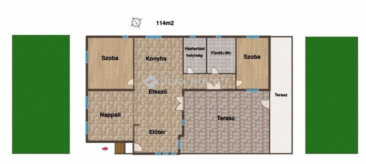 Helyiségek:Nappali+2 szoba, konyha, étkező, előtér, házatartási helyiség, fürdő+Wc