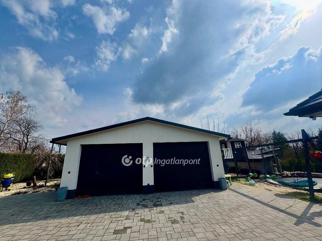 Az ingatlanhoz tartozik egy két autó számára kialakított garázs, valamint egy külön irodahelyiség, amely ideális lehet otthoni munkavégzéshez vagy vállalkozási célra is.