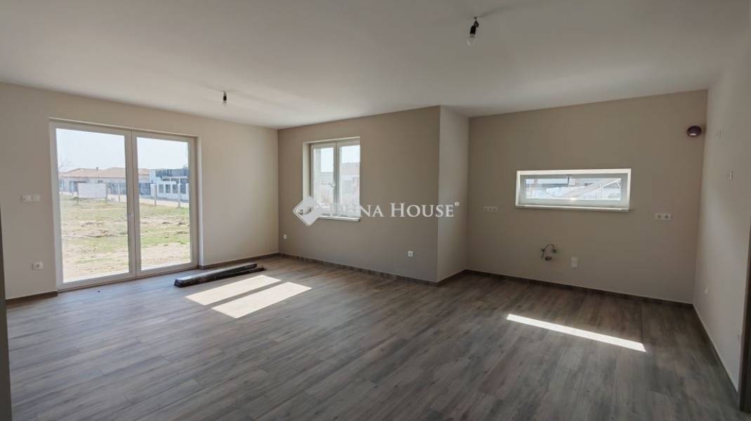 Kecskeméten 2026 tavaszán elkészült ikerház jobb oldala, 93 nm-es, amerikai konyha nappali + 3 szobával, saját 315 nm-es saroktelekkel eladó.Műszaki leírás:Főfalak:- 30 cm Porotherm N+F kerámia falazóelem- 15 cm Austrotherm GRAFIT 80 EPS hőszigetelésFödém:- 30 cm ROCKWOOL kőzetgyapot hőszigetelése Belső falak:- 10 cm-es gipszkartonNyílászárók:- Ablakok: 7 légkamrás műanyag profilrendszer, 3 rétegű üvegezéssel- Belső ajtók: egyedi legyártású- Külső ajtó: ötpontos biztonsági zárralBelső felületkezelés:- Két sor glettelés és diszperziós jellegű festés fehér színben- Fürdőszoba: 210 cm magasságig burkolva- Burkolatok: hidegpadló burkolatok, kőporcelán lappal- Meleg burkolat: laminált parkettaVillanyszerelés:- A lakás fogyasztásmérője a kerítésben van elhelyezve, elosztó táblái pedig az előszobában- Fi relé és 1x32 AKonyha:- A konyha villanytűzhely üzemeltetésére van kialakítva, egyéb háztartási gépekhez több dugaszoló aljzat került kialakításra- Konyhai beépített bútor és konyhai berendezés, gépészeti berendezés az alapárban nem készül.Fizetési feltételek:- Egyéni megállapodás szerint.- Foglaló mértéke: ~10%.- Minden hiteltípus igénybe vehetőAjánlom azoknak, akik nem akarnak bajlódni a hatalmas telekkel, de mégis fontos a zöld terület.
