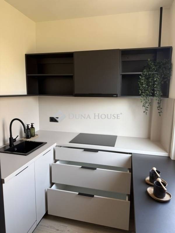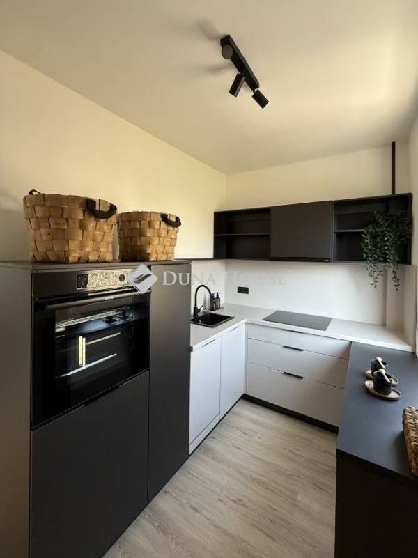 modern, gépesített konyha (főzőlap, sütő, mosogatógép, páraelszívó) lett kialakítva