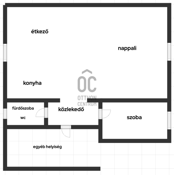 2 szoba, fürdő, nagyjából 1000 nm terület.