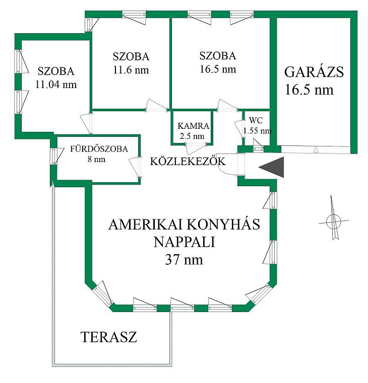 A praktikus elrendezésnek köszönhetően helyet kapott egy amerikai konyhás nappali étkezővel, valamint 3 külön nyíló hálószoba. A fürdőszoba tágas, kényelmes nagy sarokkáddal, a WC pedig külön helyiségben található.
