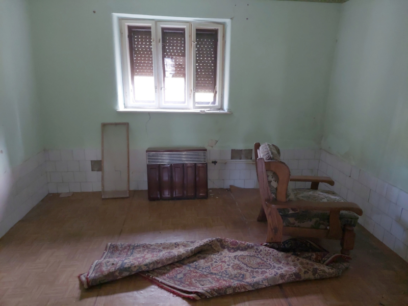 Az 50-es években épült felújítandó kertes ház 50cm-es vegyes (vályog+tégla) falazattal készült. A tetőszerkezete kombinált tető, cserépfedéssel ellátva. A ház fűtése gázkonvektorral és cserépkályhával van megoldva. Az épületbe villany, víz, gáz és csatorna be van kötve, de ha a gáz használatára szükség van, akkor a gázórát vissza kell köttetni.