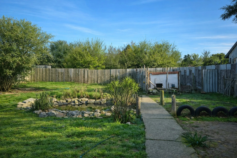 A 720 nm-es telek rendezett, kellemes pihenőkerttel és hangulatos kerti tóval, amely igazi nyugalmat áraszt. A nyugati fekvésnek köszönhetően a kert és a lakótér délutánonként napfényben fürdik.