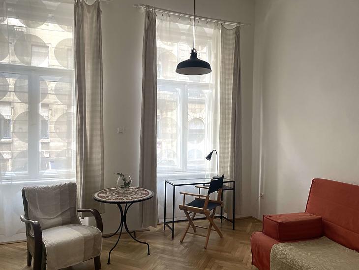 Kiadó Budapest VIII. kerületében, a Szilágyi utcában egy kellemes hangulatú, világos, napfényes, magasföldszinti lakás, amely ideális választás lehet mindazok számára, akik nyugodt, zöld környezetben szeretnének élni, mégis fontos számukra a városi infrastruktúra közelsége. Az ingatlan elhelyezkedése kifejezetten előnyös: a közelben park is található, így a mindennapok során könnyen elérhető a természet közelsége, legyen szó sétáról, kikapcsolódásról vagy sportolásról.