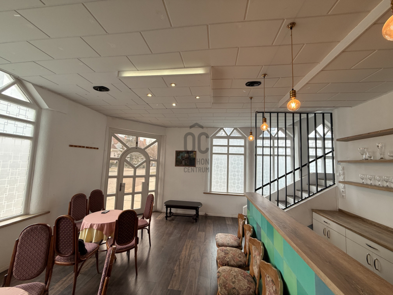 Összesen egy 646 m2-es saroktelken, 413 m2-es, 2 szintes vállalkozásra is kiválóan alkalmas épület, (melyben jelenleg vendéglő van kialakítva - 313 m2) a hozzá tartozó külön bejáratú lakrésszel (98 m2-es, nappali+1 szobás), garázzsal, pincével eladó. A vendéglátó egység külön is megvásárolható.