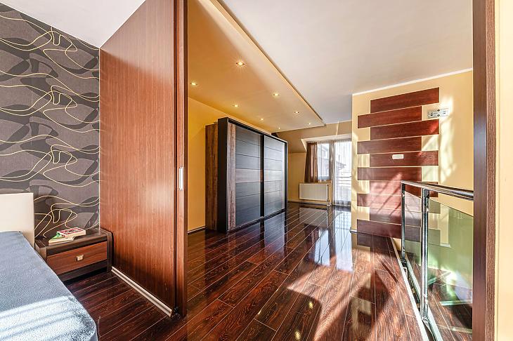 A modern kialakítás és a világos terek kellemes, otthonos hangulat.