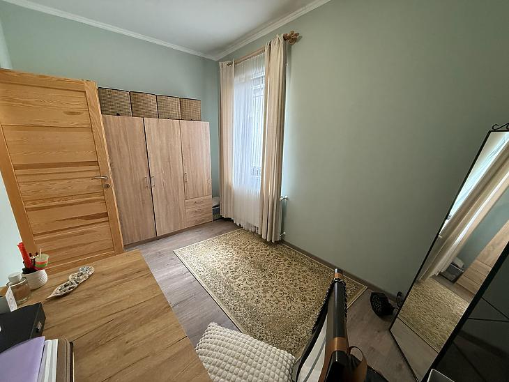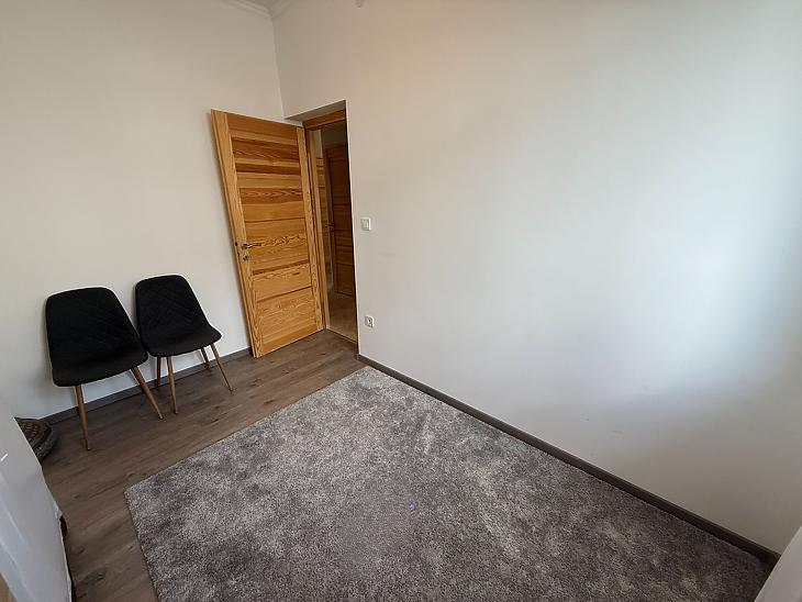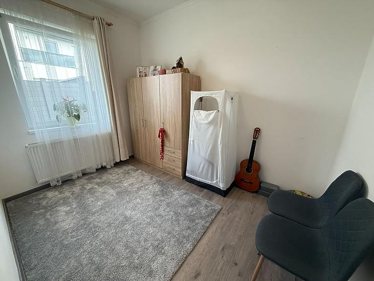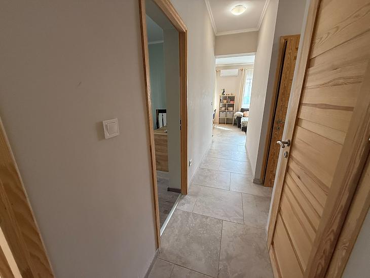 Amerikai konyhás nappali + étkező 8 négyzetméteres teraszkapcsolattal, 3 szoba, kádas fürdőszoba, wc, közlekedő, előszoba.