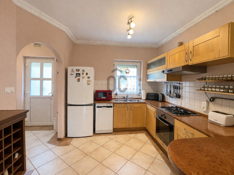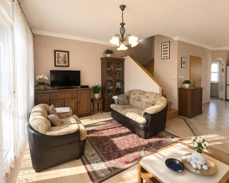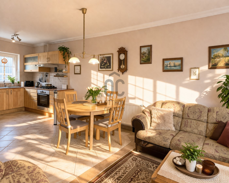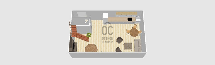 - Az alsó szinten egy tágas konyha–étkező–nappali található, amely kényelmes közösségi térként szolgál a mindennapokban.