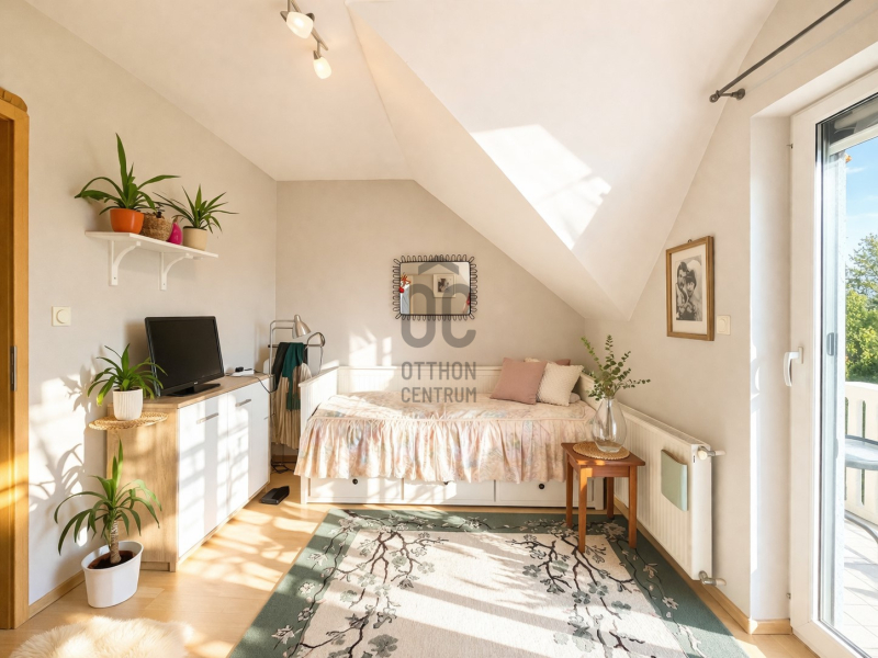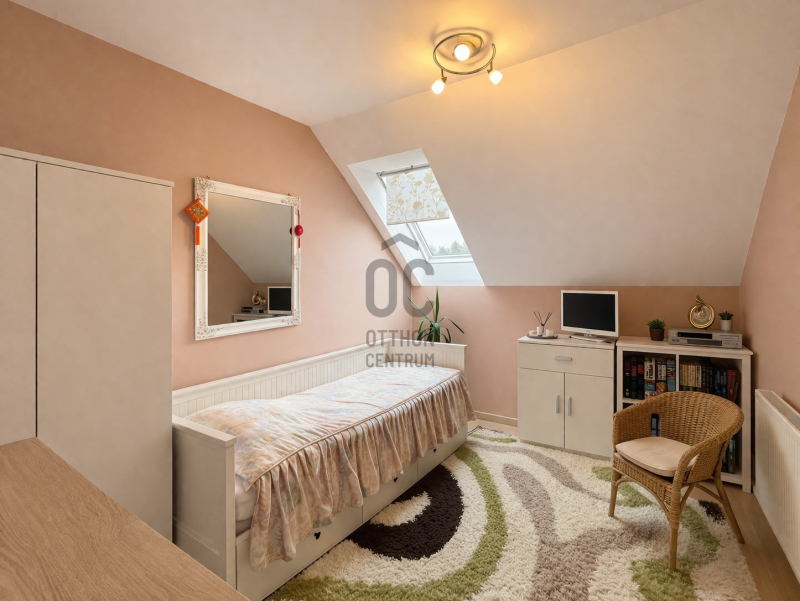 - Az emeleten 2 külön nyíló szoba található, amelyekhez saját fürdőszobák tartoznak. Ez a kialakítás különösen kényelmes családoknak, pároknak vagy akár vendégfogadás esetén is.