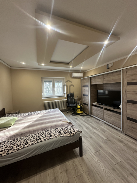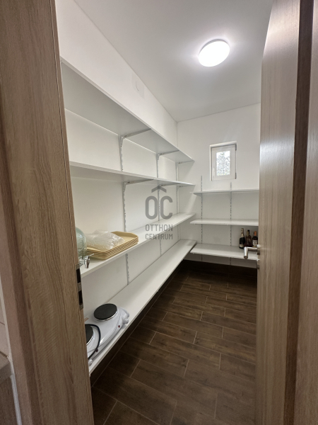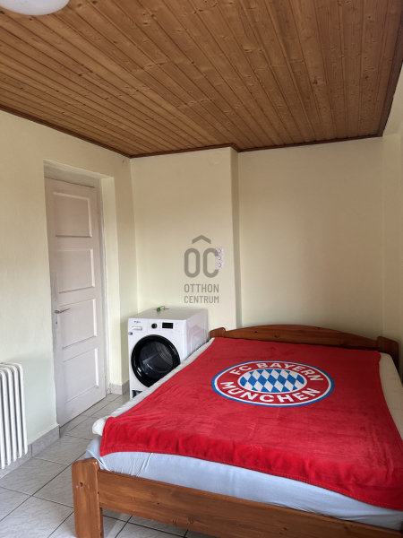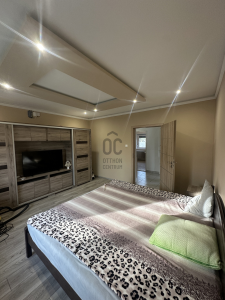 Tovább haladva a közlekedőn, bal oldalon egy újabb, szintén 17 nm-es, parkettás szoba található, amely légkondicionálóval felszerelt. A klímák hűtő-fűtő funkcióval rendelkeznek, emellett a ház pincéjében egy működő vegyestüzelésű kazán is helyet kapott.