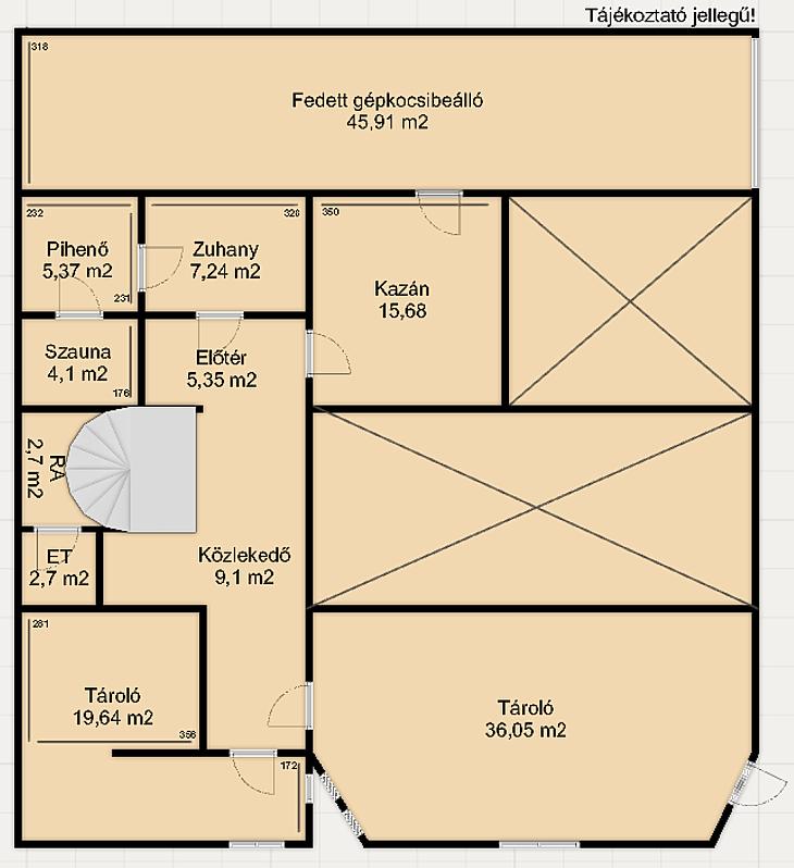 A pince szinten praktikus tárolóhelyiségek, valamint egy kétállásos garázs kapott helyet, amely kényelmes parkolást biztosít. A földszinten világos és jól kihasználható terek várják: konyha, étkező, tágas nappali, hálószoba, dolgozószoba, fürdőszoba és gardrób biztosítják a mindennapi élet kényelmét.