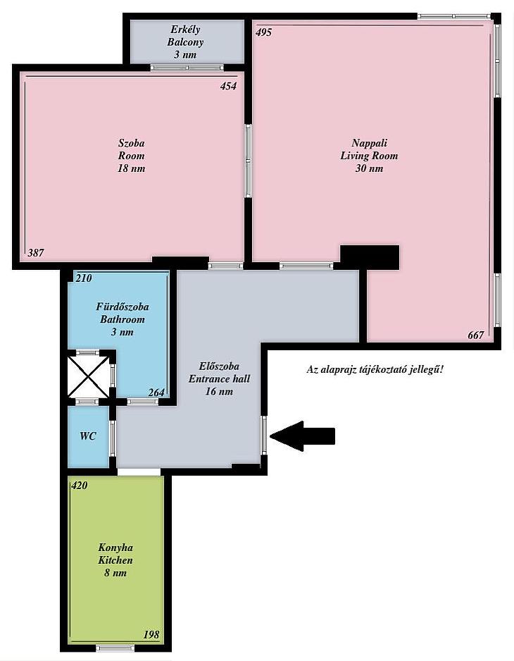- 18 nm-es külön nyíló hálószoba erkéllyel