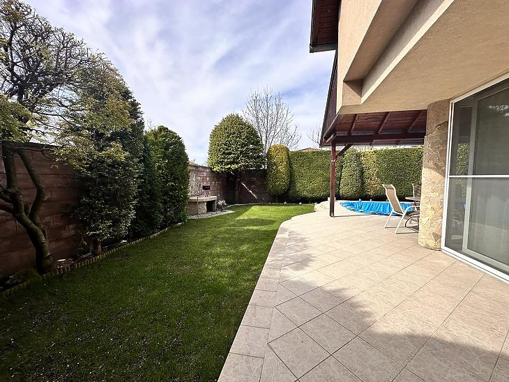 Az ingatlan dél-nyugati fekvésű, így egész nap világos, napfényes tereket biztosít. A gondosan kialakított, teljesen intim, beláthatatlan kert tökéletes helyszín pihenéshez és családi programokhoz.