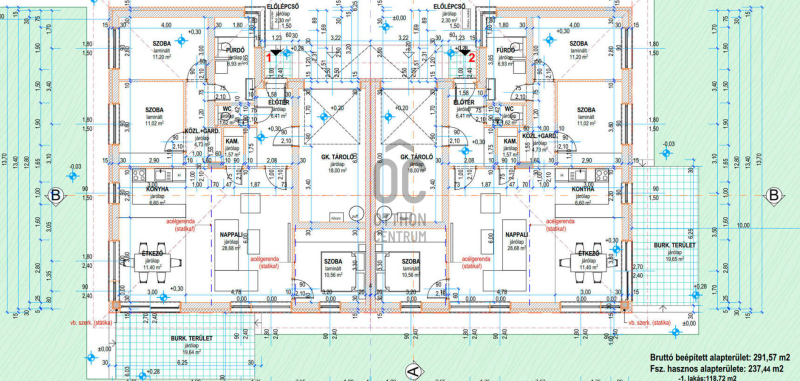 Az ikerház, egyenként : 118,72 m alapterületű lakásból ál, amelyek tágas belső terekkel és átgondolt alaprajzukkal ideális választás igényes családok számára.
