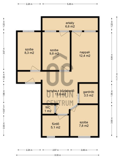 - Műanyag nyílászárók, gázcirkó fűtésű.