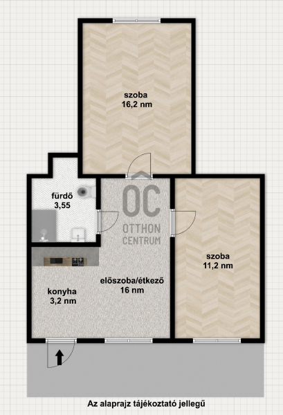 Az ingatlan a két külön nyíló szobája egy nagyméretű közlekedőből nyílik, ami ideális helyszín lehet nagyobb társaság fogadására is.