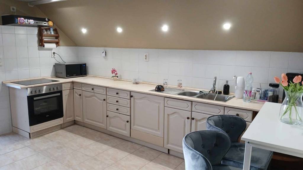 A külső feljáró miatt összeköltözőknek is ideális, mert mindenkinek megvan a saját lakrésze.