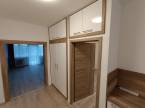 A széles, kényelmes közlekedőben lévő, egyedi gyártású beépített szekrények könnyítik a holmik tárolását. A közlekedő folytatása a tágas étkező. A konyhából kamra nyílik.