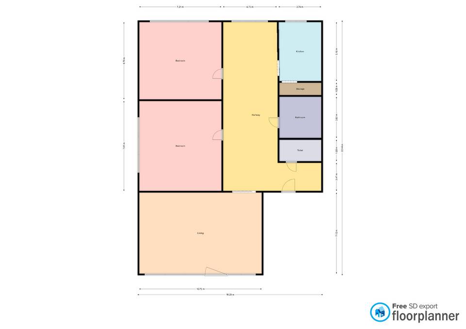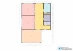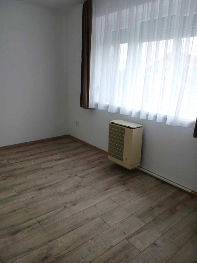 A szobák külön nyílnak, laminált parkettával, a többi helyiség járólappal burkolt. Fürdőszoba és wc külön van.