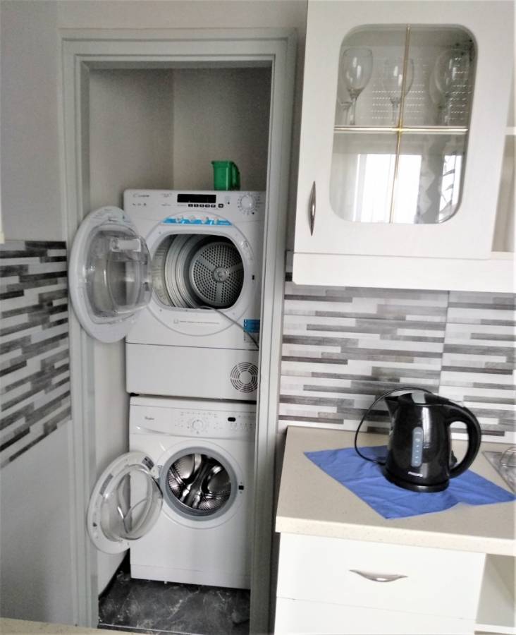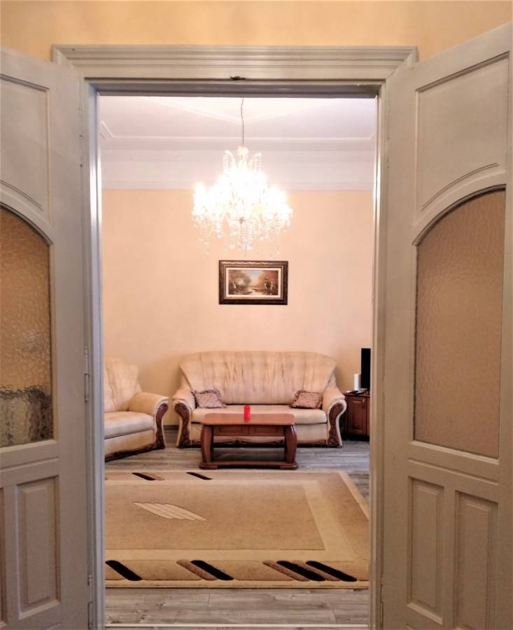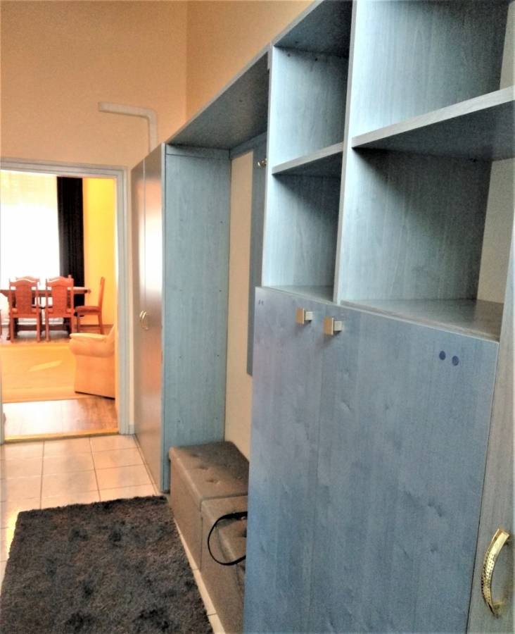 A lakás bútorozott, gépesített. A szobák egymásból nyílnak, a nappaliban klíma van.