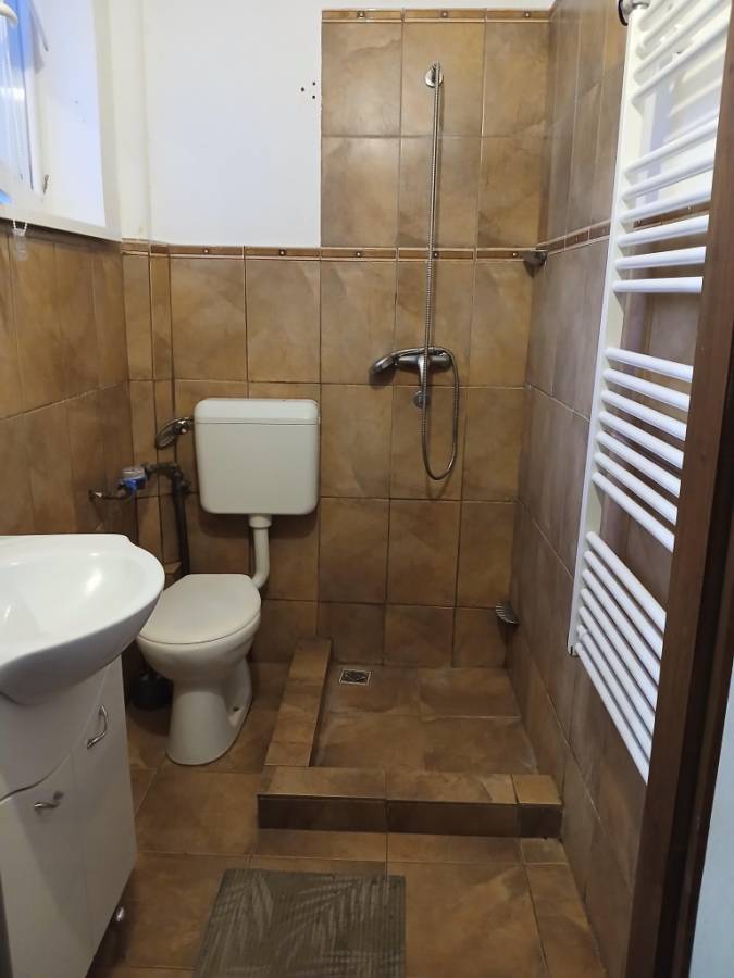 A lakás bútorozott, gépesített. A szobában inverteres klíma van. Fürdőszoba zuhanyfülkés, a wc-vel együtt van, nagy ablak könnyíti a szellőztetést.