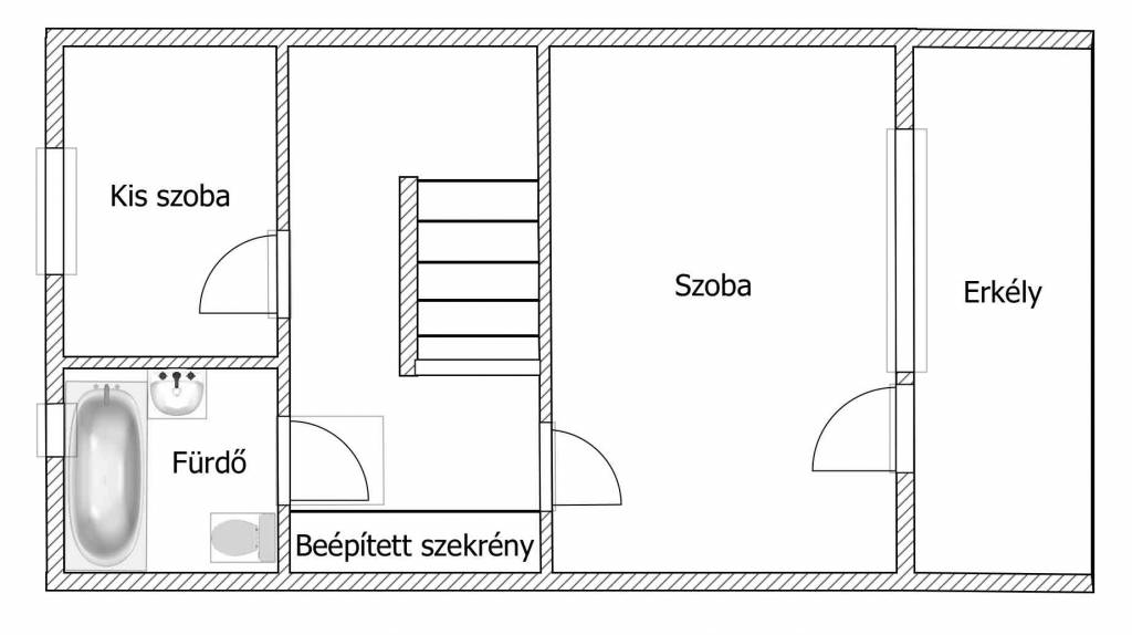 Az emeleti nagyszobából 6 nm-es erkélyre lehet kimenni.