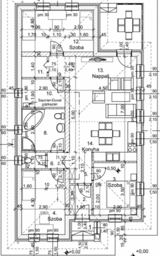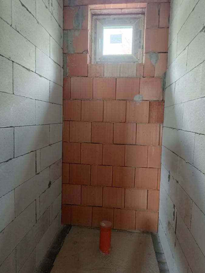 Falazat: Porotherm 30-as tégla + 15 cm homlokzati hőszigetelés.