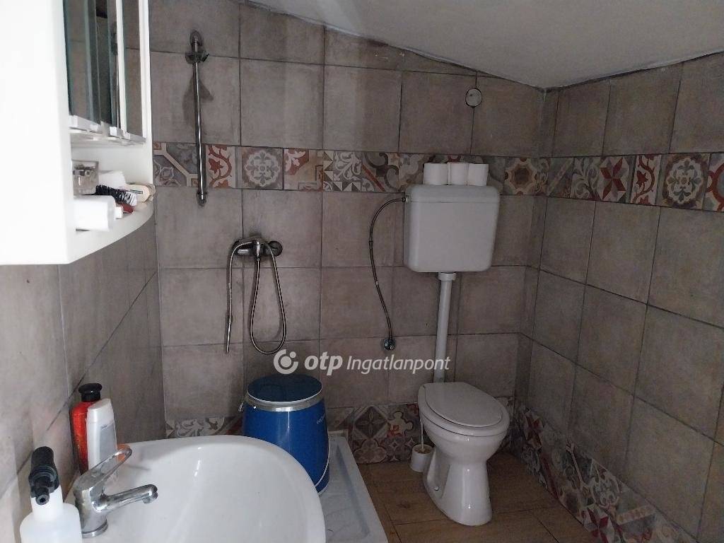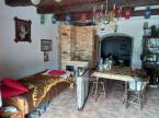 A földszint fagerendás mennyezetű, a tágas térben konyhapult és zuhanyfülke található. Továbbá itt helyezkedik el a hangulatos téglakályha, melyben sütő is van és a fűtés mellett főzésre is alkalmas.