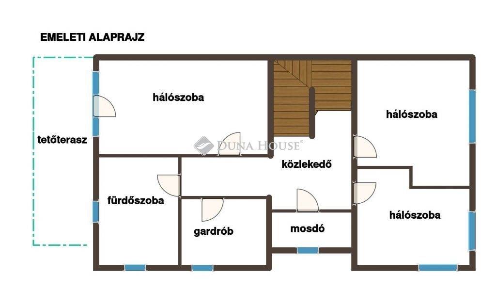 -A nappalihoz kapcsolódó, világos közösségi tér kényelmes életteret biztosít, míg a négy külön nyíló, nagyméretű hálószoba minden családtagnak saját privát teret nyújt.