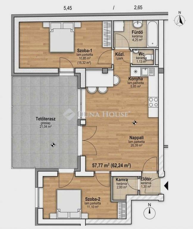 Kínálatunkban eladó egy 14 lakásos exkluzív társasház harmadik emeleti lakás található, amely a belváros szívében, tégla építésű, magas műszaki tartalommal készült. A harmadik emeleti nettó 57,77 m2-es (bruttó 62,24m2) lakás tágas nappali + 2 hálószobás elrendezéssel, külön fürdővel WC-vel, valamint egy lenyűgöző, 21 m²-es Penthouse jellegű lodzsával rendelkezik.
