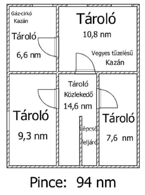 Pince: Az épület alatt egy hatalmas, 94 nm-es alagsor/pince található, amely számtalan hasznosítási lehetőséget rejt.