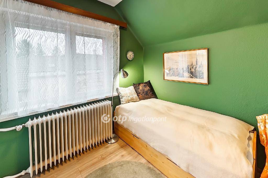 A pinceszint az udvarról közelíthető meg. A ház energetikailag korszerű az akkumulátoros napelemeknek, a két kondenzációs kazánnak, a 10 cm szigetelésnek és a nyílászáróknak köszönhetően.