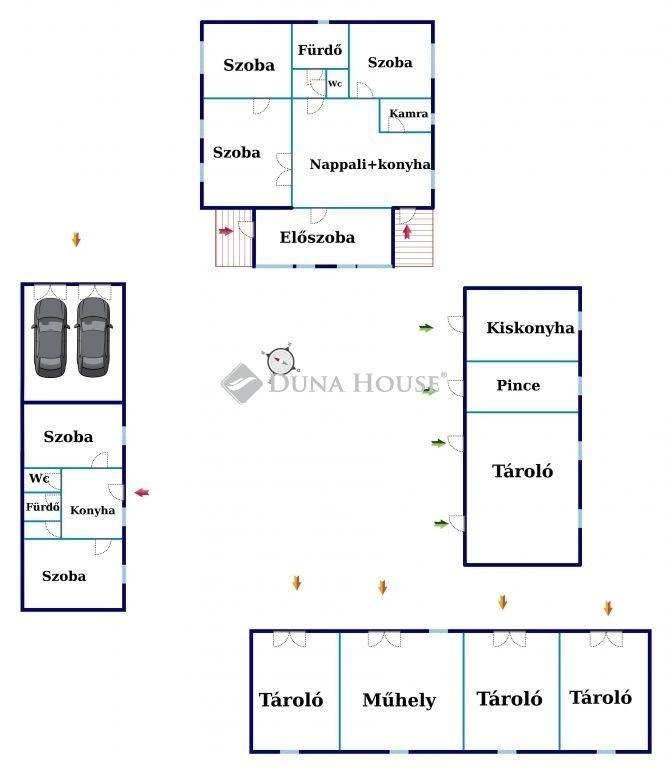 {Kecskemét közelében} eladó nagyszerű adottságokkal rendelkező {kétrendbeli} tanya {sok melléképülettel}!A főépület 1982 ben épült {tégla épület}, {beton födémmel}. Az egész ház alatt {száraz pince} található. Az ingatlan {energetikailag korszerűsítve} lett, {kicserélték a nyílászárókat} és {10 cm szigetelést} kapott!Hatalmas nappali, konyha és 3 nagy hálószoba található a házban. Fűtése{gáz kombi kazánról} is és {vegyes tüzelésű kazánról} is megoldható.Az első melléképületben található egy {dupla garázs} és egy kb 50 nm-es 2 szobás lakás, ízlésesen kialakítva.A második épületben helyet kapott egy kis konyha, egy boros pince és kb 60 nm-es tároló.A harmadik épületben műhely és tárolók lettek kialakítva.A teljes telek bekerítve, {fúrt kútról} öntöző és csepegtető rendszer, kerti tó is megtalálható.A területen van {40 db gyümölcsfa}.Legfontosabb paraméterei röviden:- {Városi víz}- {Ipari áram}- {Kétrendbeli}- {Sok jó állapotú melléképület}- {Aszfaltozott út kapcsolat}- {Elektromos Kapu}- {Öntöző rendszer}- {Tégla épületek}Ha felkeltette érdeklődését {hívjon bizalommal}!