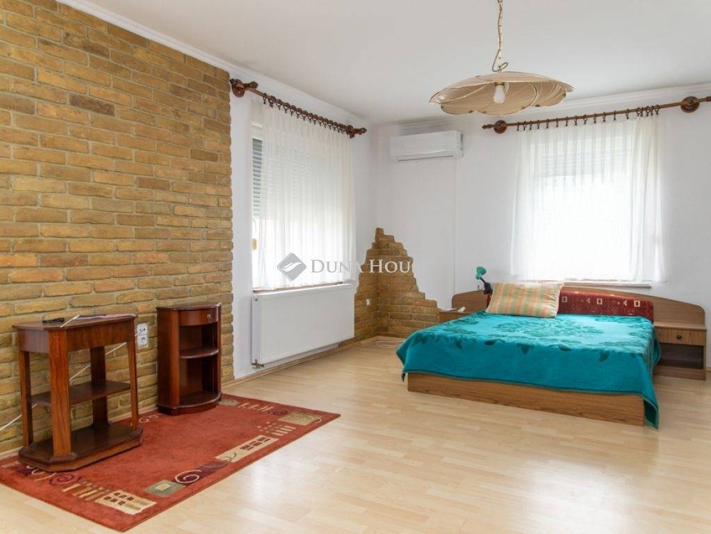 Nemesnádudvar központjában eladó egy 150 nm-es azonnal költözhető, tehermentes, 4 és fél szobás kétszintes, hőszigetelt, klimatizált, családi ház bútorozva.Az ingatlan egy rendezett 1148 nm-es telken helyezkedik el, ahol található még: 2 garázs, melléképületek és egy nagy kert. A melléképületek korábban borászati célokat szolgáltak, így akár vállalkozásra, műhelynek vagy tárolásra is kiválóan alkalmasak.A teljes ház alatti szuterén ad lehetőséget a tárolásra.Öntözésre fúrt kútról van lehetőség.A téglaház 1985-ben épült beton alapra. Az épületet a felújítás során leszigetelték és az alsó szinten a nyílászárókat műanyagra cserélték. Az otthon fűtéséről jelenleg gázcirkó rendszer gondoskodik, amelyet egy hangulatos cserépkályha egészít ki. Emellett vegyes tüzelésű kazán használatára is van lehetőség.Az ingatlan egyik legnagyobb előnye az átgondolt, praktikus elrendezés és a világos, tágas terek. Központi elhelyezkedésének köszönhetően minden fontos intézmény orvosi rendelő, bolt,posta, iskola, óvoda könnyen elérhető, így különösen ideális választás nagycsaládosok számára.Helyiségek:alsó szint:-előszoba-nappali (cserépkályhával)-étkező-konyha-fürdőszoba-wc-irodahelyiség külön zuhanyzóval-kamraemelet:-3 és fél szoba-wc-gardróbMűszaki jellemzők:-elektromos kapu-klíma-gázcirkó fűtés radiátorokkal-cserépkályha-vegyestüzelésű kazán-ipari áramEz az ingatlan remek választás mindazoknak, akik egy tágas, jól kihasználható, többgenerációs otthont vagy akár vállalkozási lehetőséget is keresnek egy nyugodt településen.Nemesnádudvar egy festői fekvésű, sváb hagyományairól és borkultúrájáról híres község Bács-Kiskun vármegyében, Bajától 15 km-re északra az 54-es főút mellett található. A Duna-part 12 km, kerékpárral egy kellemes 40 perces túra.