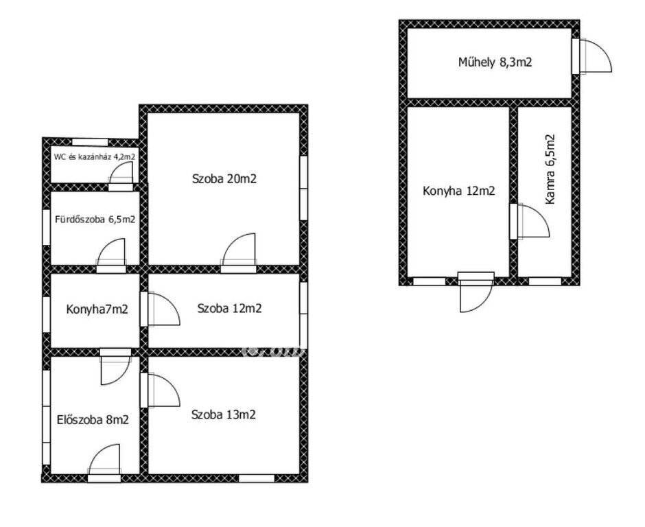 A 540 m2-es telken elhelyezkedő, vegyes falazatú ház hivatalos alapterülete 69 m2, amely két utcáról is megközelíthető, így különösen praktikus elrendezést biztosít.