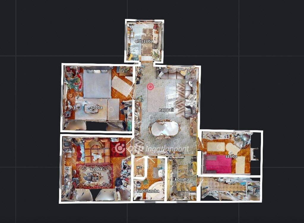 A nappaliból 3 külön nyíló szoba érhető el:
