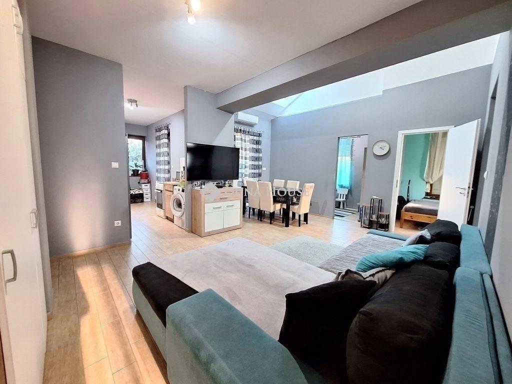 A házhoz tartozó parkosított kert automata öntözőrendszerrel ellátott, így a zöld környezet fenntartása egyszerű és kényelmes. Az udvarban 2 autó számára biztosított beállási lehetőség áll rendelkezésre.