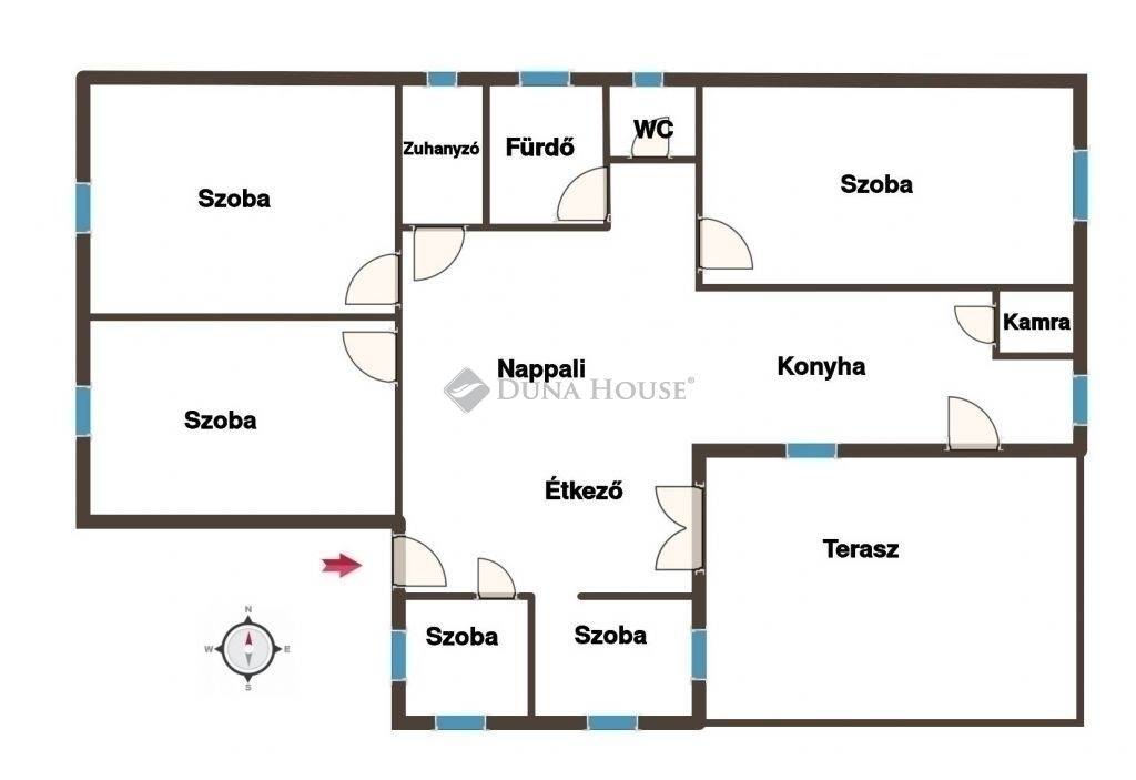 Ez a világos, praktikus elrendezésű családi ház ideális választás lehet nagyobb családok számára is. A sok ablaknak köszönhetően a helyiségek egész nap természetes fényben úsznak, így az otthon kifejezetten barátságos és élhető hangulatú.