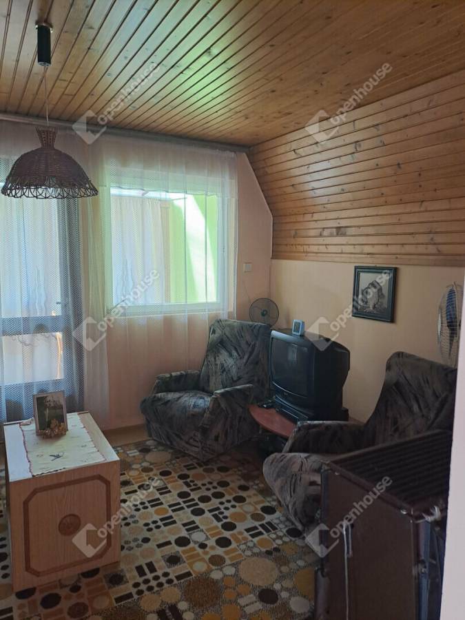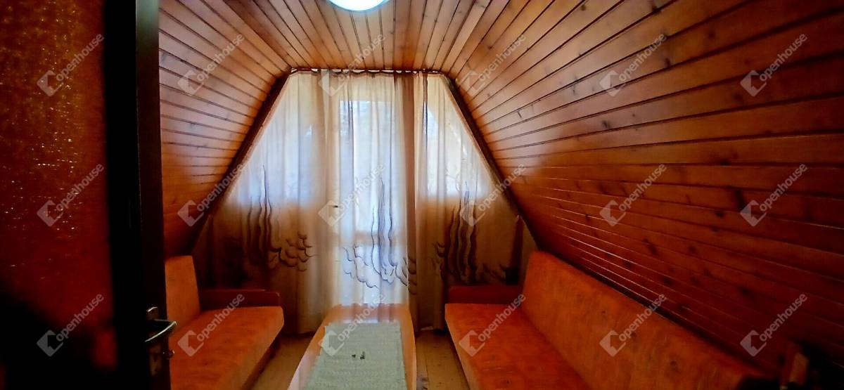 Az ingatlan belső elrendezése praktikus és jól átgondolt. Az alsó szinten egy szoba, egy tágas, egy légtérben kialakított nappali–étkező, főzőfülke, lépcsőház, valamint fürdőszoba WC-vel található. A lépcsőn keresztül megközelíthető az emelet, ahol egy különálló szoba kapott helyet, illetve innen lehet lejárni a pincébe is, ahol egy konyha és egy tároló helyiség található.