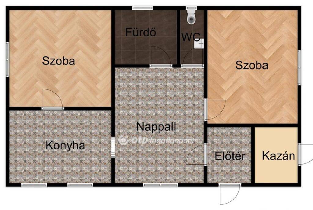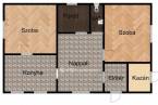 Helyiségek: előszoba, két szoba, nappali, fürdőszoba külön WC-vel, közlekedő és spájz