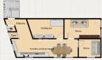 -a világos beltérben : 2 szoba , előszoba , amerikai konyhás nappali , fürdőszoba , külön wc és tároló található
