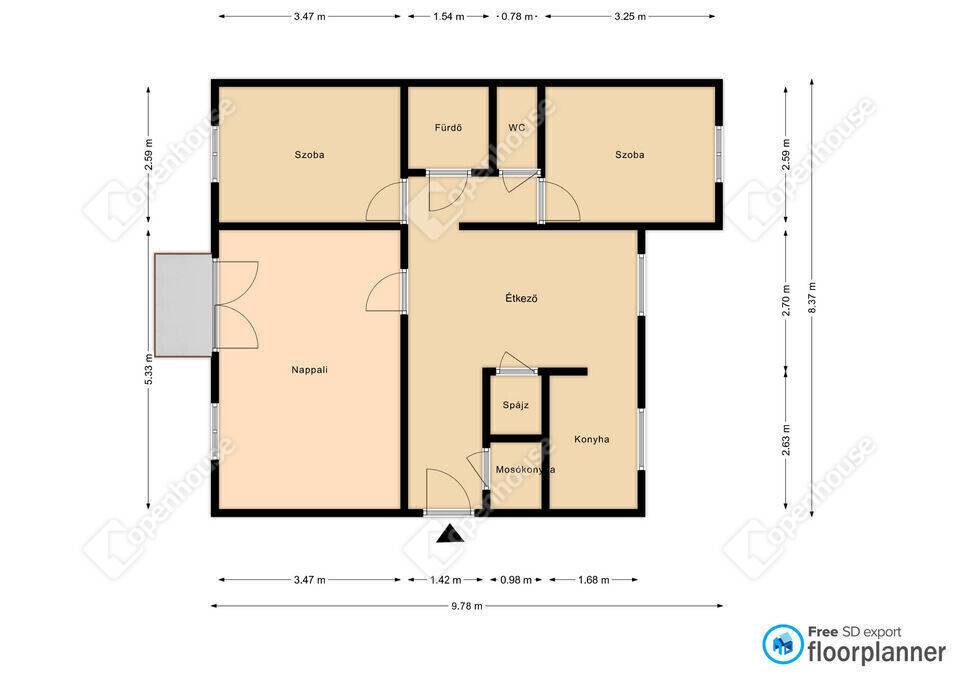 - A lakás egy 12 lakásos társasház, második emeletén található, 63 nm-es, 3 szobás.