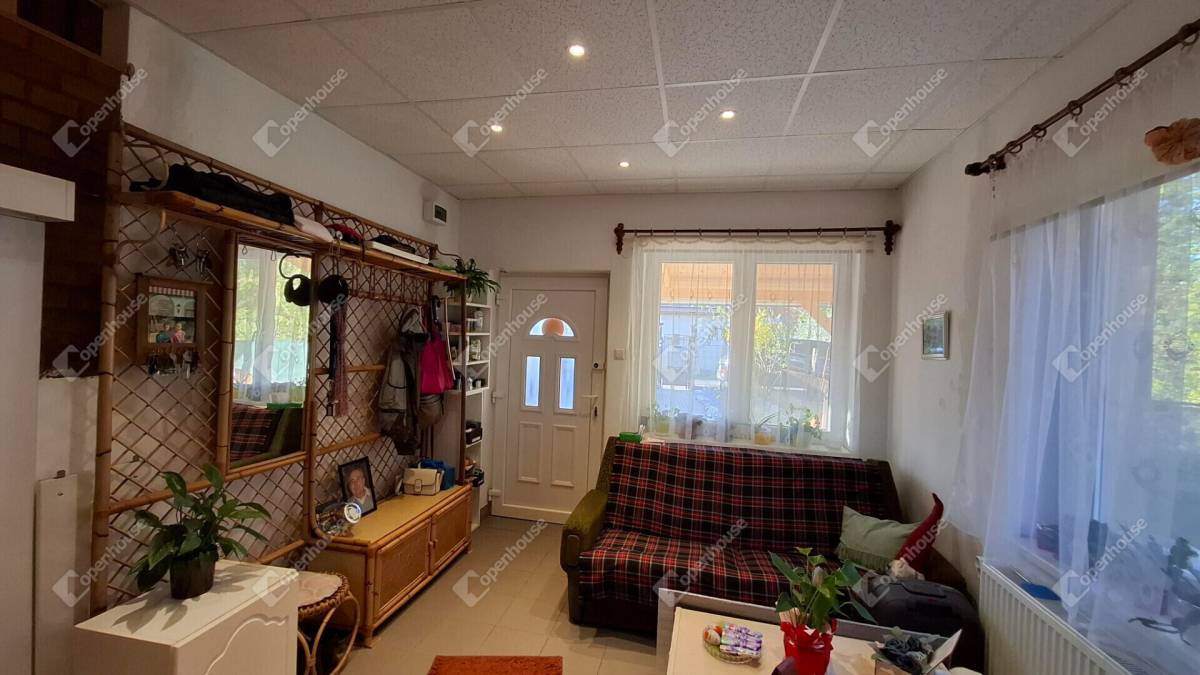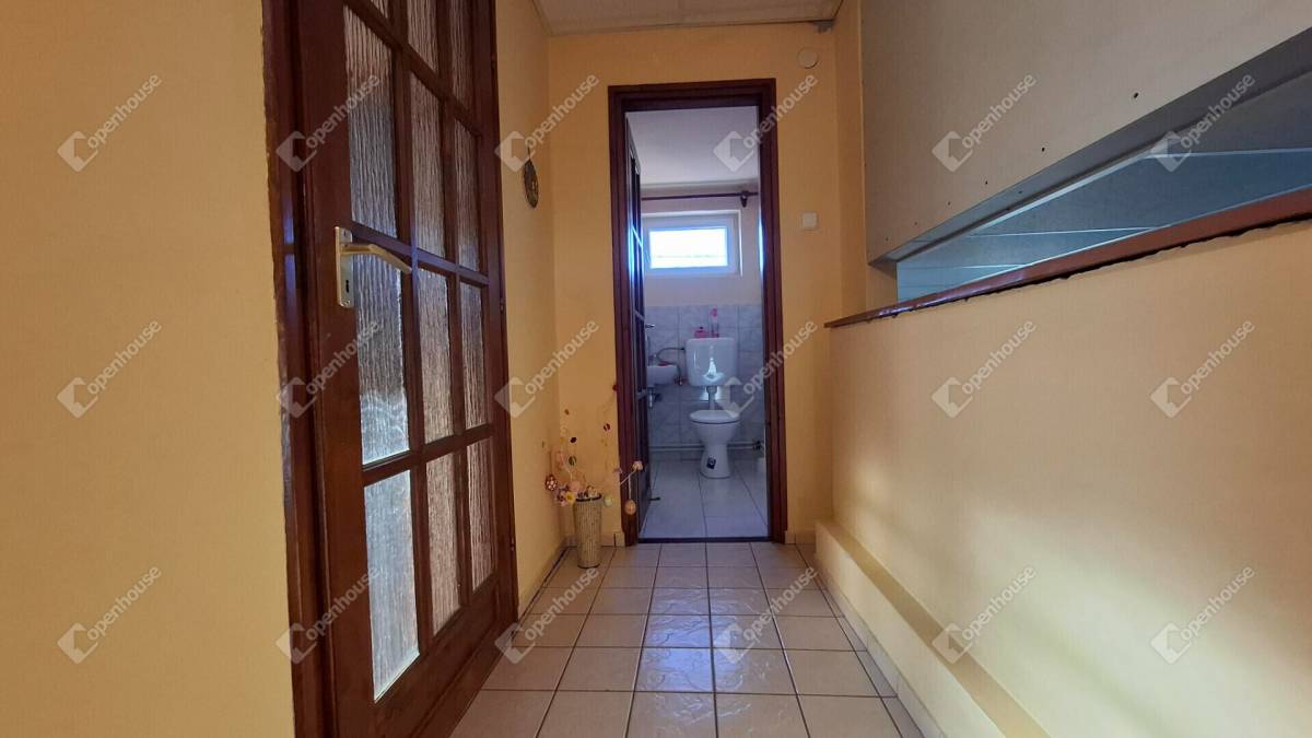 A házba belépve a kényelmes előtér fogad, ami egy tágas amerikai konyhás helyiségben folytatódik. Az ingatlan többi helyisége innen nyílik, egy félemelet magasságában, nevezetesen a két különálló szoba, a fürdőszoba, és egy wc. A fürdőszoba kádas kialakítású.